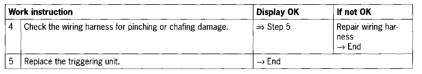 - Triggering unit for airbag faulty