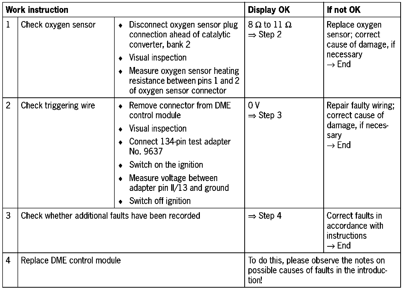 DME control module, connector II, pin 13 and oxygen sensor jack ahead of catalytic converter, bank 1, pin 4