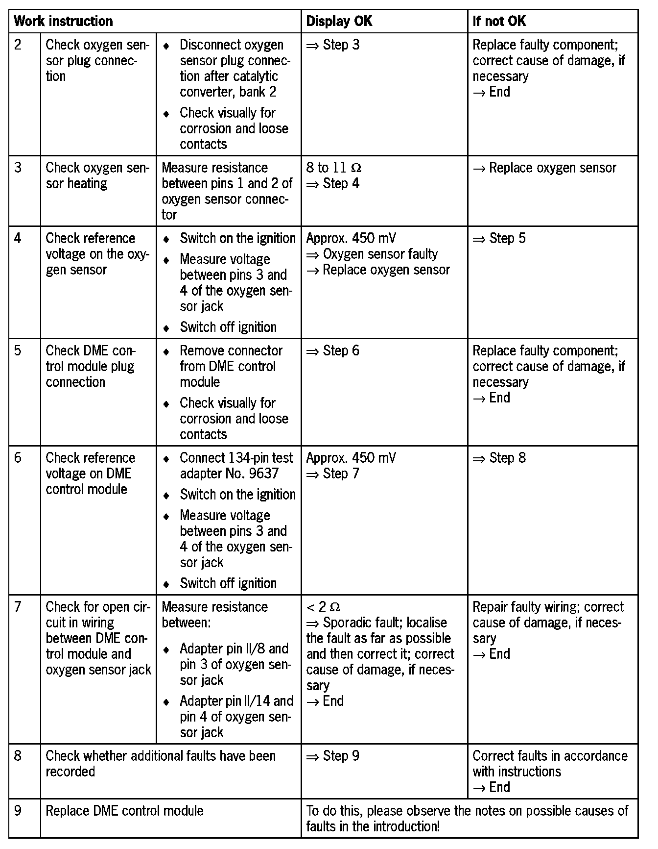 NOTE: Do not use contact spray on the oxygen sensor plug connections as this may cause irreparable damage to the wiring (contamination of the oxygen sensor via the reference air channel).