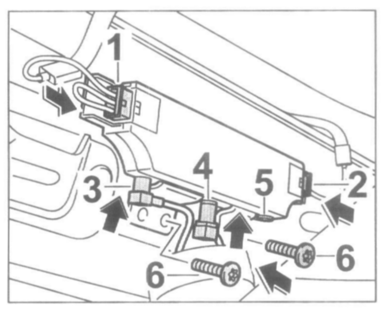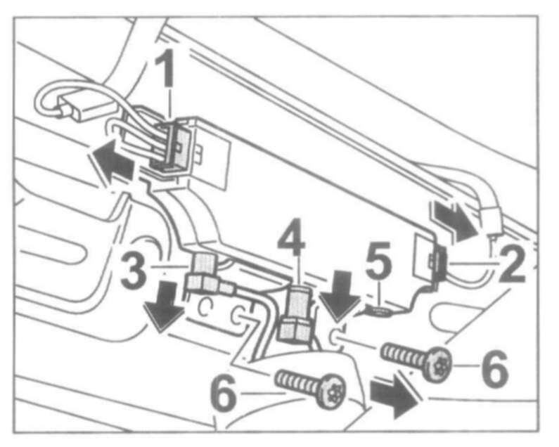2. Unplug the plug connections for the antenna control unit -3, 4- on the left side, -3, 4, 5- on the right side.