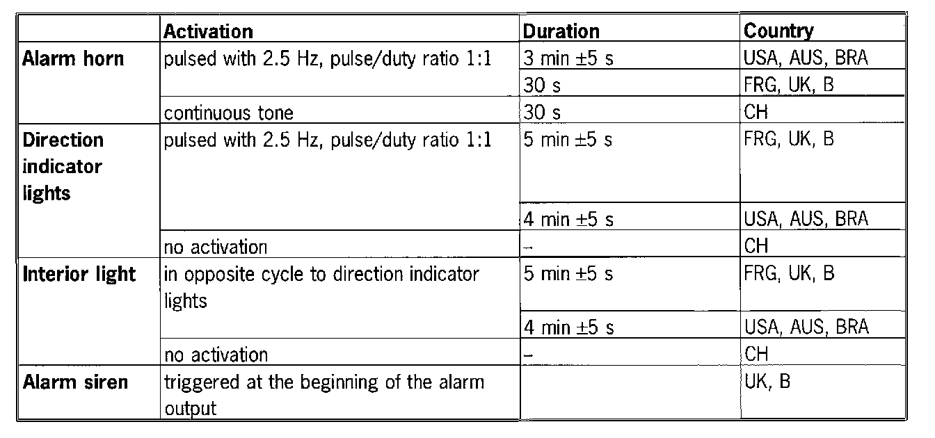The country in which the vehicle is used can be coded using the Porsche System Tester 2. The type of alarm output and its duration depend on the country codes.