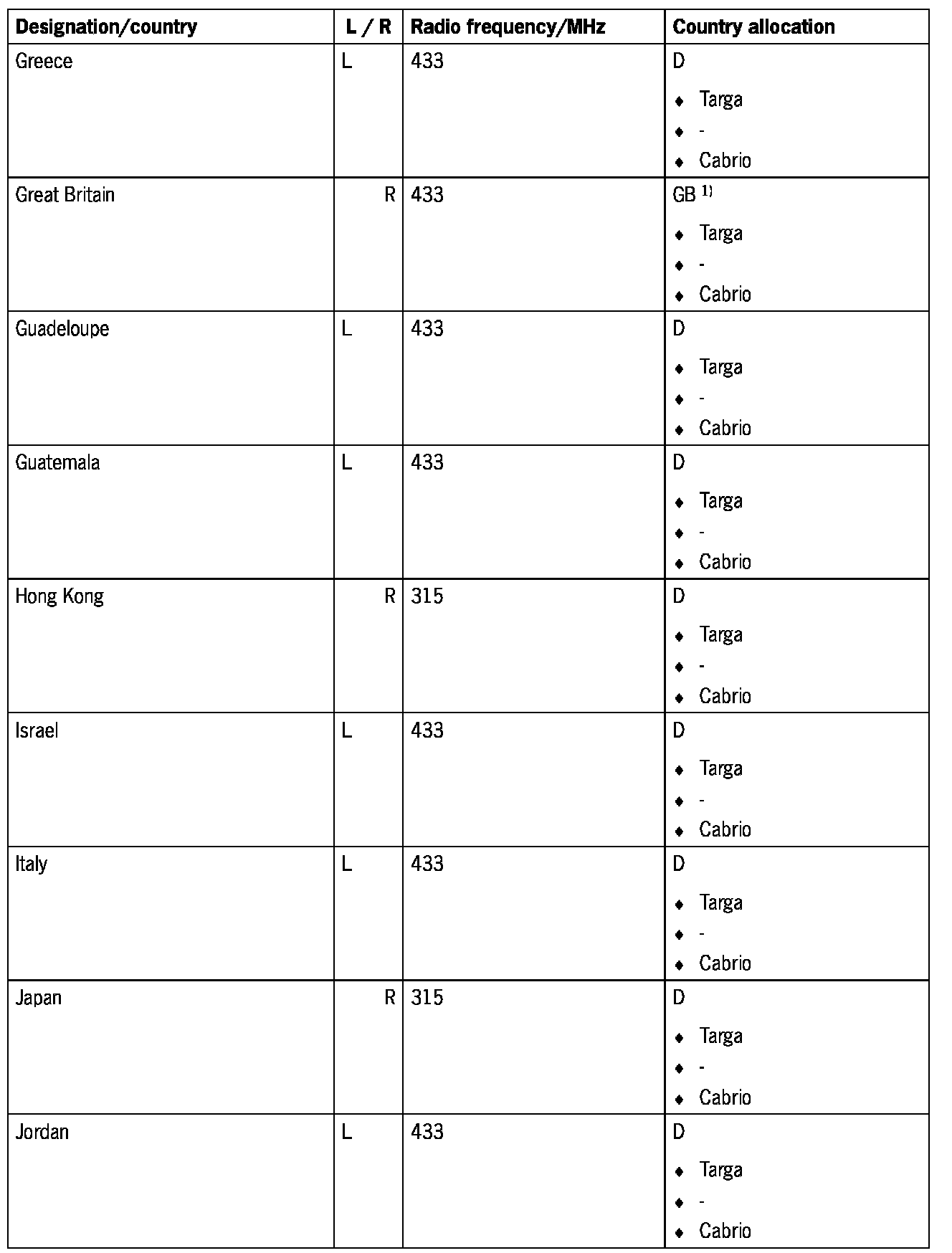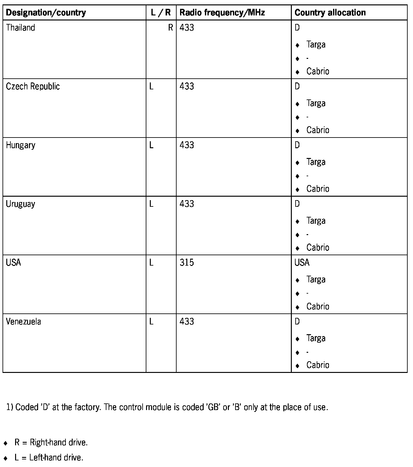The country in which the vehicle is used as well as the vehicle model (sliding roof, Cabrio) can be coded using the Porsche System Tester II No. 9588.