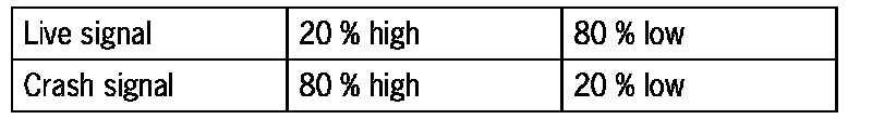 The airbag control module emits a signal to the alarm system control module no later than 35 seconds after pin 86 S is switched on and until pin 86 S is switched off again. This signal has a frequency of 10 Hz and indicates two states, namely: