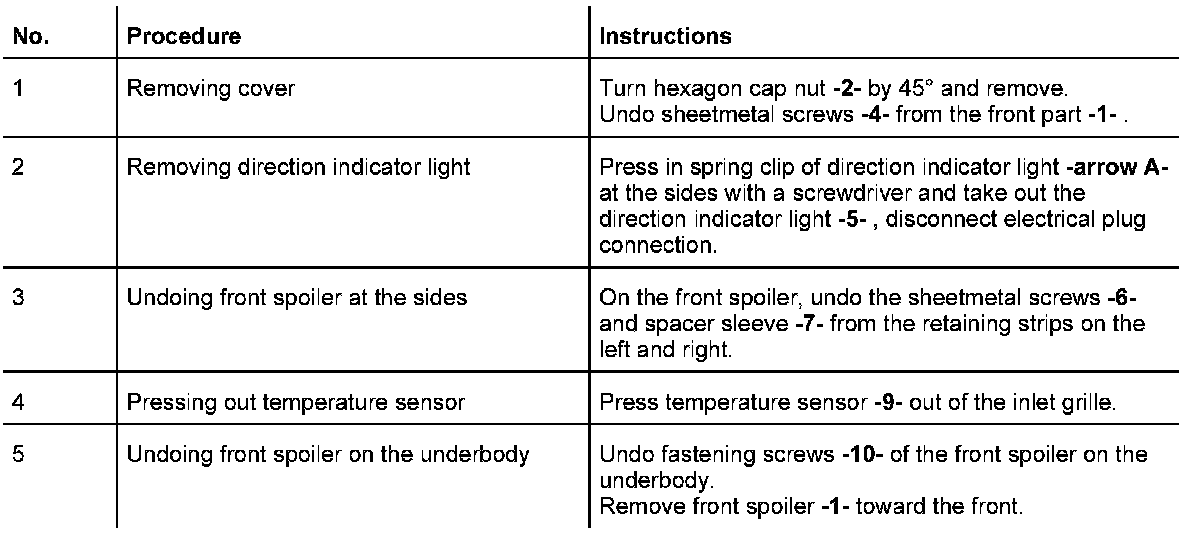 INFORMATION: The wheel housing liner must be partially detached before the front spoiler can be removed. Refer to Removing and installing wheel housing liner.
