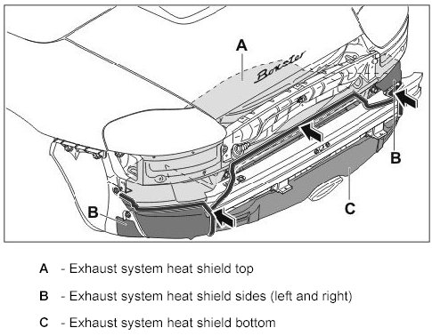 - Check heat shields for deformation, bonding (detachment of the aluminium layers), tears and missing or damaged sealing strips.