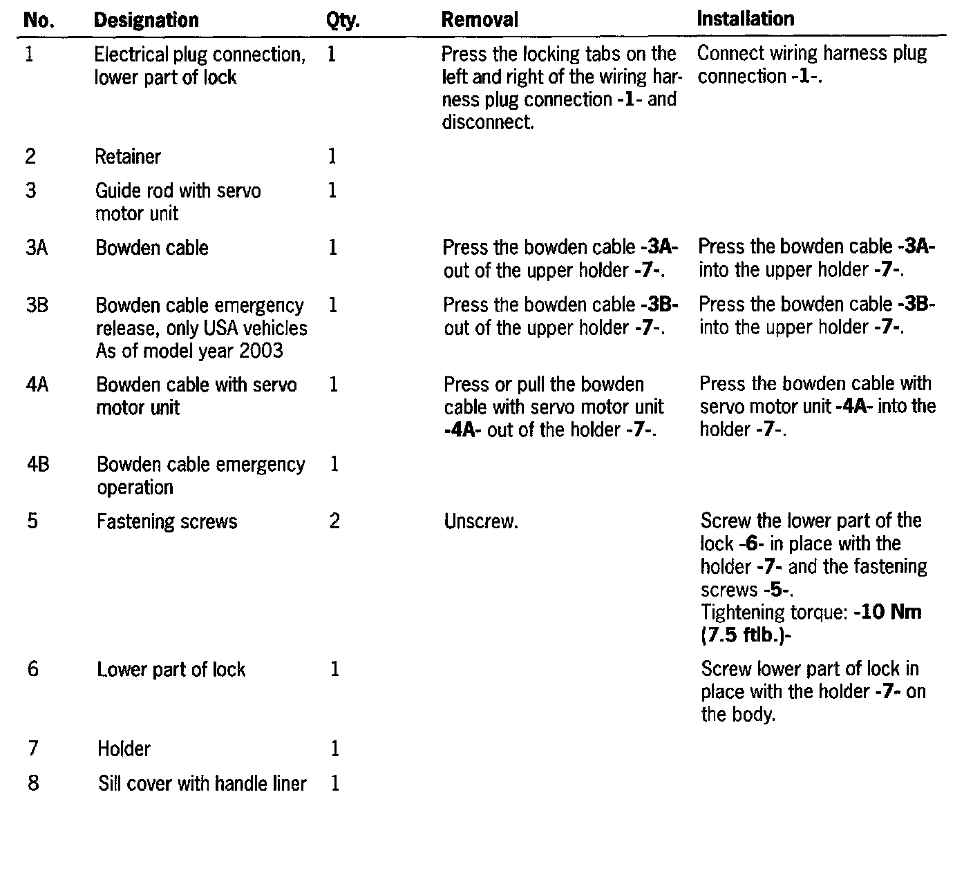 Removing And Installing Lower Part Of Lid Lock At Rear