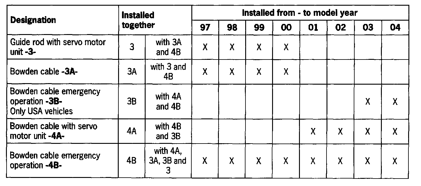 Observe the variant table of the installed bowden cables.