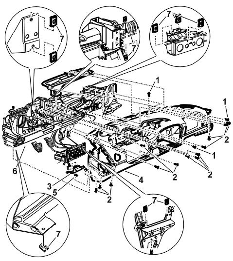 INFORMATION: Before removing the instrument panel bracket, the instrument panel must be disassembled. Removing and installing the instrument panel bracket