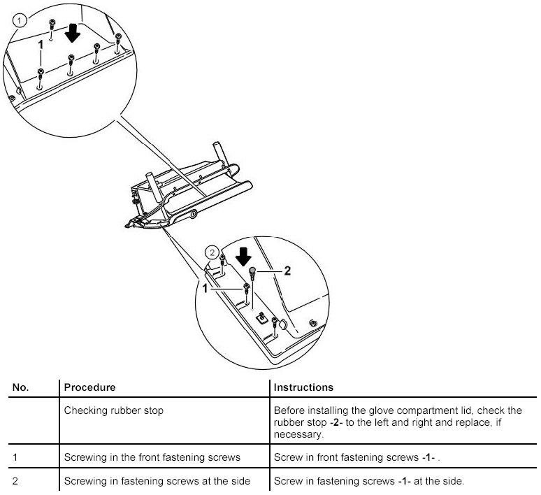 1.7. To fit the glove compartment, engage the electrical lead -4- into the clip -3-.