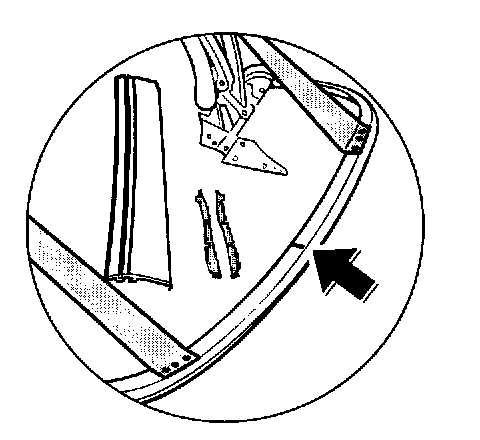 a. When pressing the centre cover moulding into the roof frame, make sure that the top side of the convertible top is free from wrinkles.