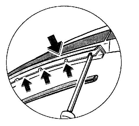 b. Press the retaining clips out of the groove of the centre cover moulding.