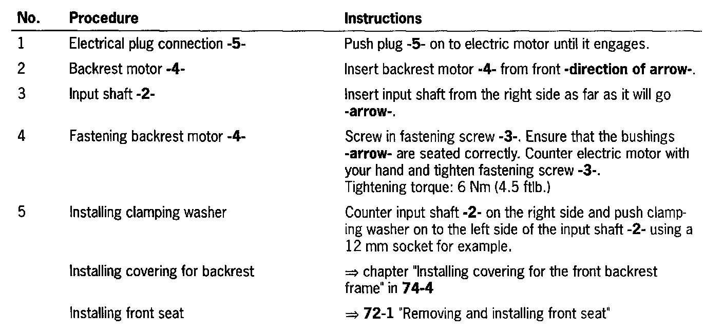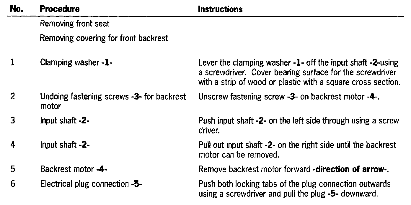 Removing and Installing Electric Motor For the Backrest Adjustment