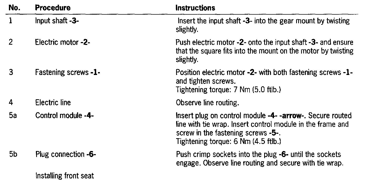 Removing and Installing Electric Motor For the Front Seat Height Adjustment