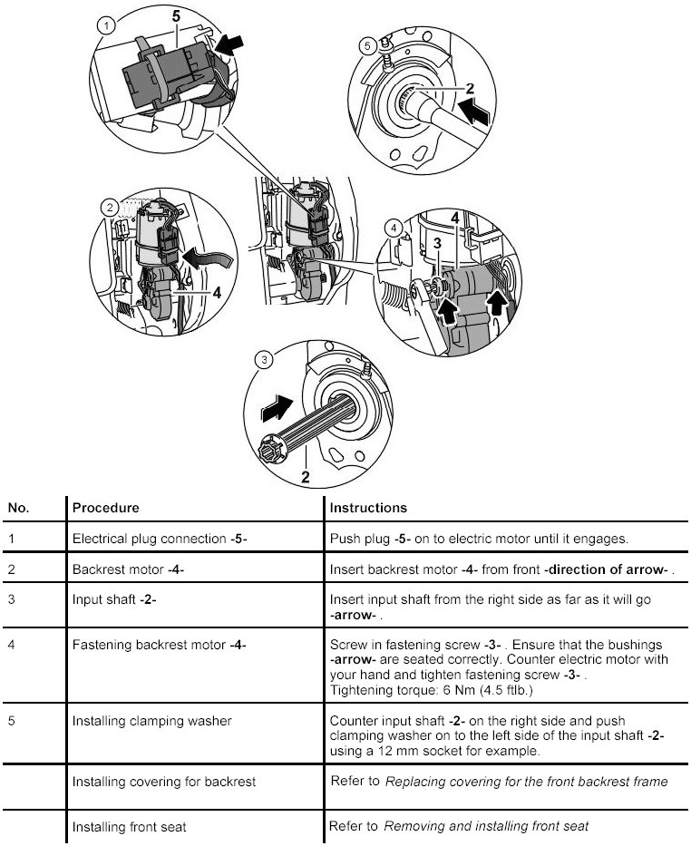 Removing And Installing Electric Motor For The Backrest Adjustment