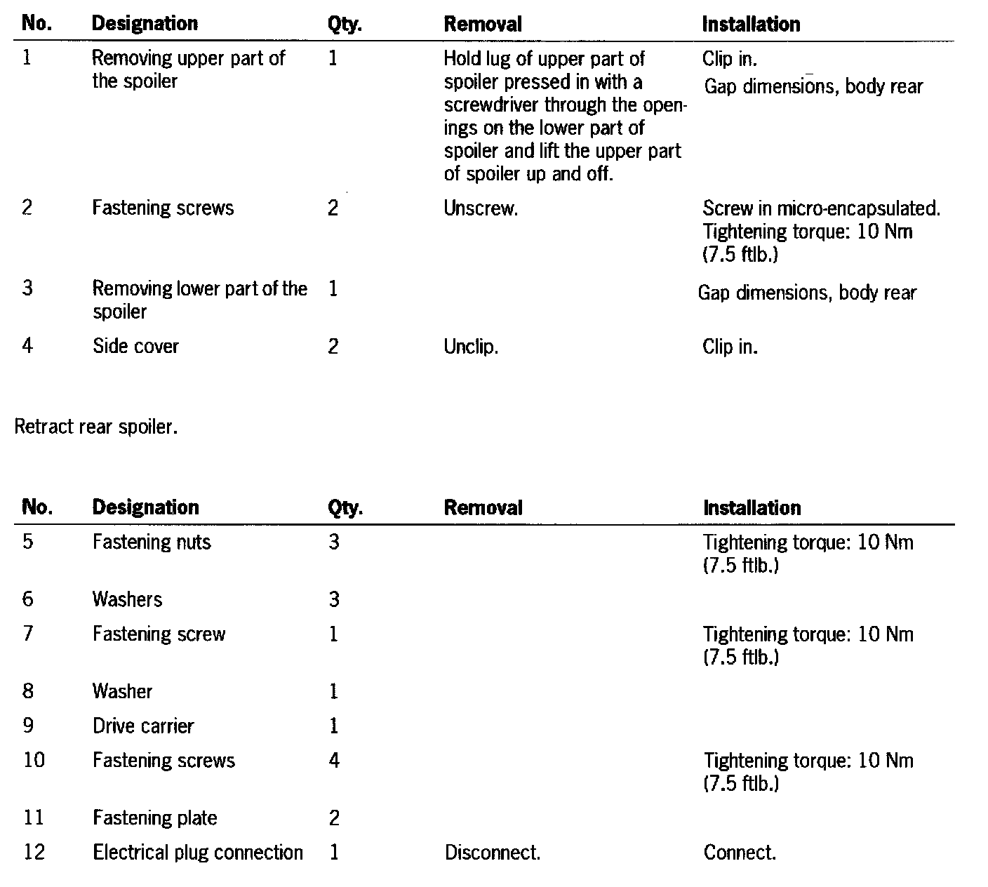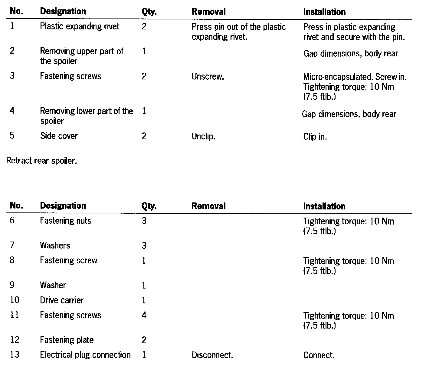Removing And Installing Rear Spoiler As Of Model Year 2003