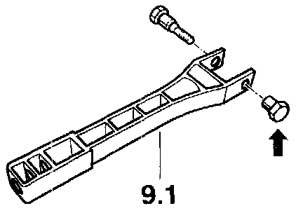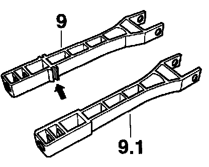 Note! The former brake pushrod -9- with guide (double rib) -arrow- is to be replaced with the brake pushrod -9.1- without guide!