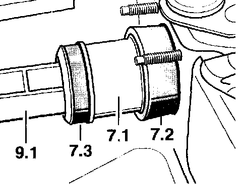 2. Insert seal -7.2- (without lubricant) into the firewall. It is essential to ensure correct seating! Then insert (push in) the connection sleeve -7.1- into the seal -7.2- using rubber sliding compound for example Capella or tire mounting paste. Recheck that it is seated correctly and correct if necessary!
