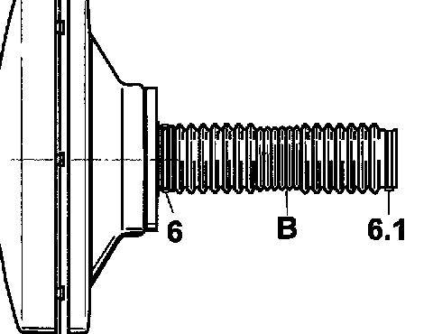 Note! Before using the brake booster, push the screw clamp -6.1- onto the bellows -B- or onto the brake pushrod!