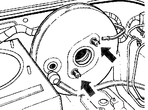 8. Tighten fastening screws of brake booster (Torx T 45) -arrow- to 23 Nm (17 ft. lbs.). Fit the vacuum line for the brake booster.
