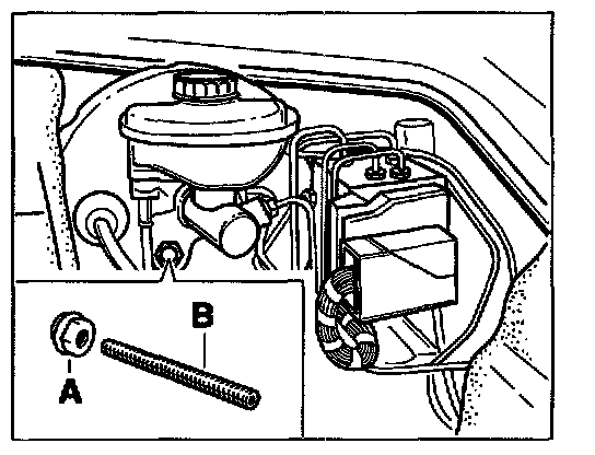 - The assembly of the brake master cylinder -B- with the brake booster -C- must not be disconnected for removal and installation if both parts should continue to be used.