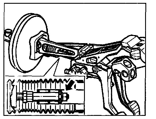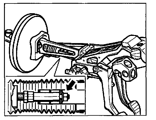 - Perform a fine adjustment of the brake pushrod if the correct position of the brake pedal is not given.