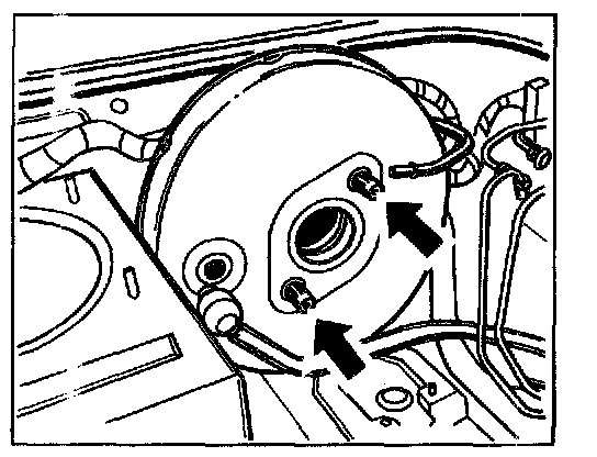 10. Disengage the vacuum line on the brake booster. Undo the fastening screws -arrows- of the brake booster (Torx T 45). Pull out brake booster.