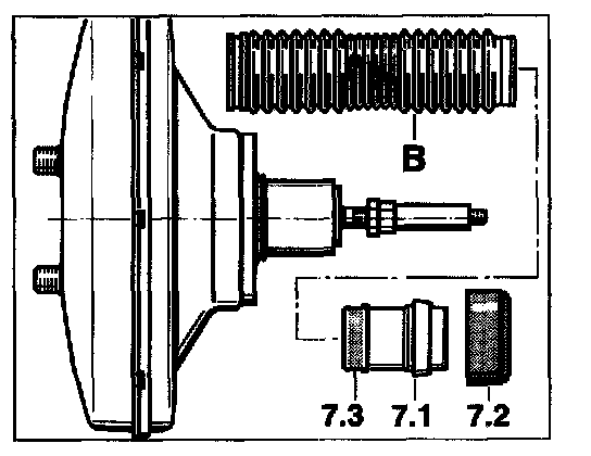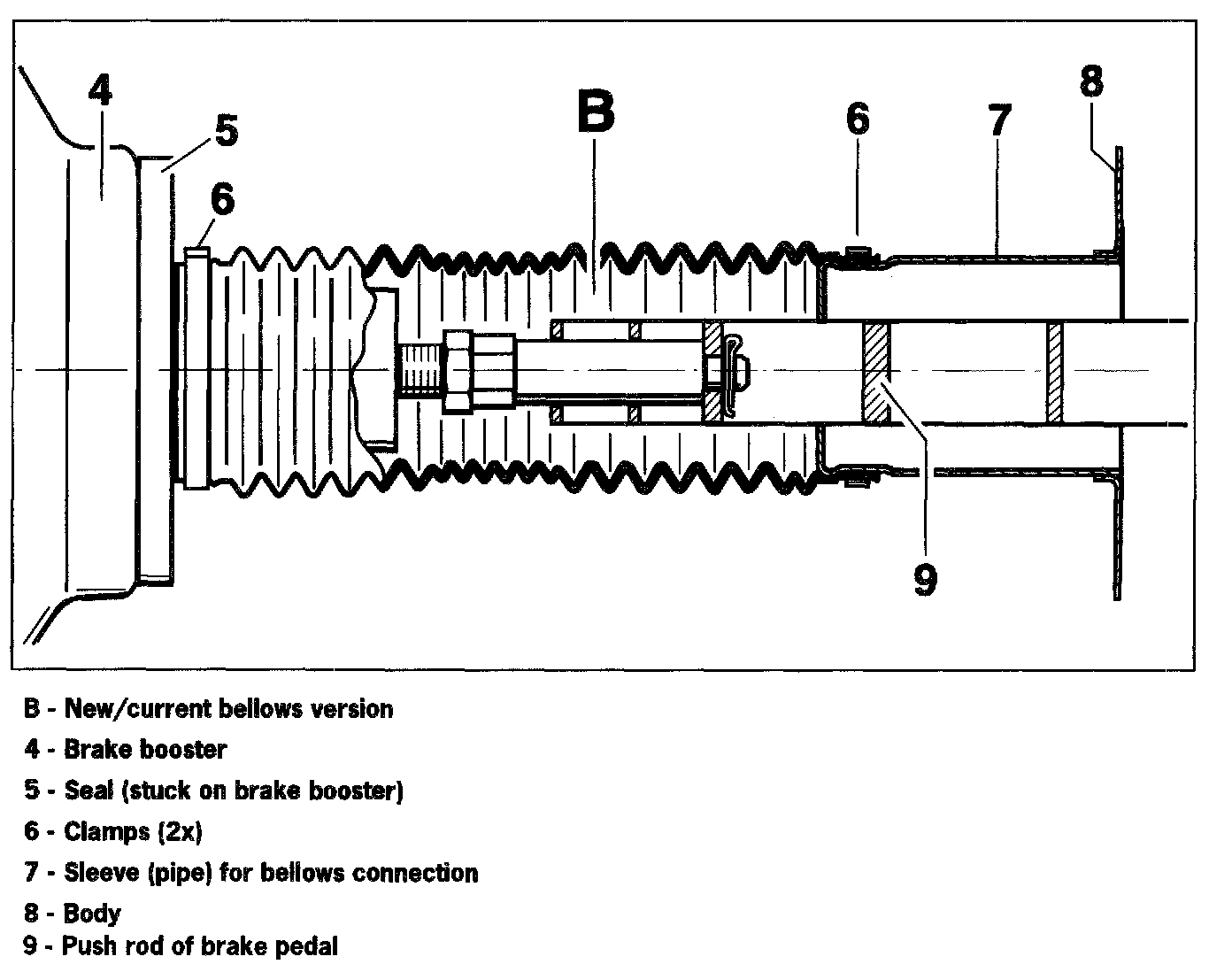 - As a replacement part. the brake booster is delivered with the new/current continuous bellows -B-.