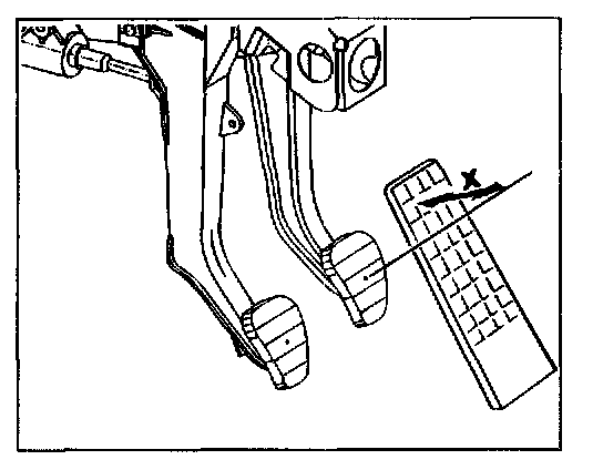 4. Check the position of the brake pedal -Dimension X = 45 + 5 mm-. Perform measurement between the centre of the brake pedal plate and the accelerator pedal. Perform a fine adjustment of the brake pushrod if the correct position of the brake pedal is not given.