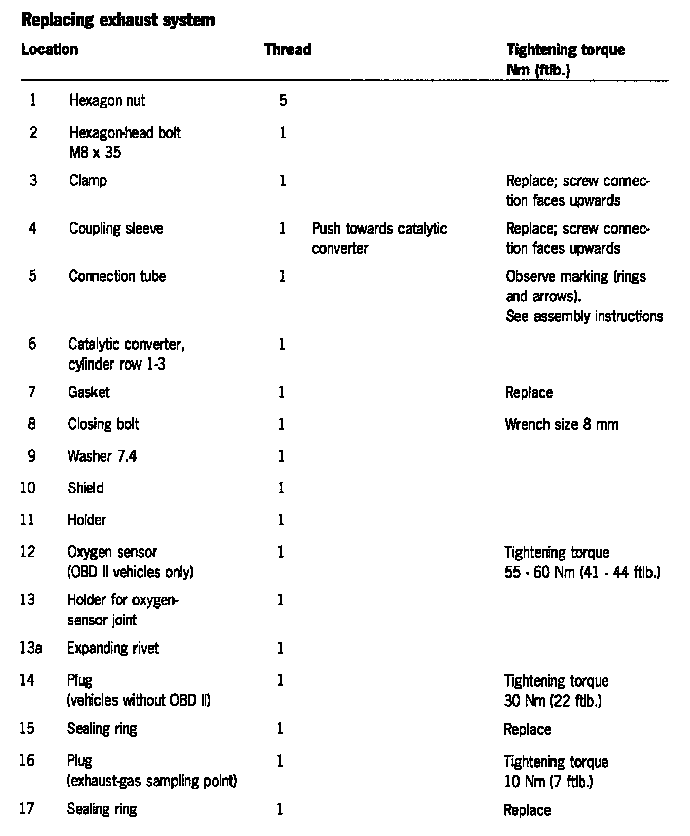 ASSEMBLY INSTRUCTIONS FOR EXHAUST-SYSTEM COMPONENTS
