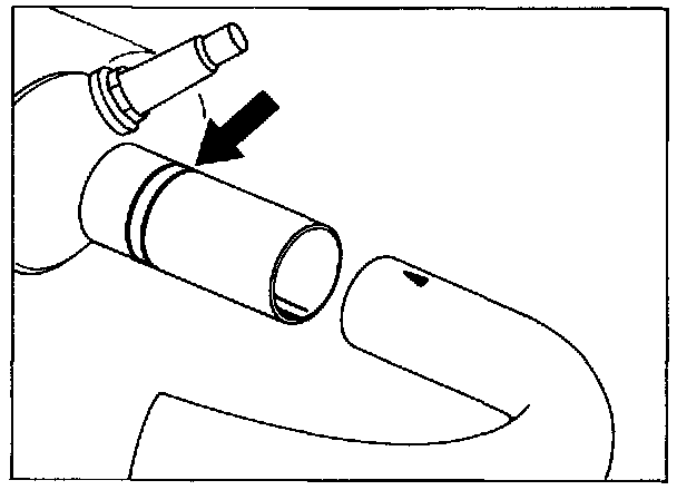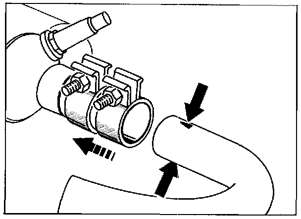 The position of the sleeves is midway between the arrow heads of the connection tube and the two grooves around the pipe neck of the catalytic converter. When correctly assembled, only one groove should be visible.