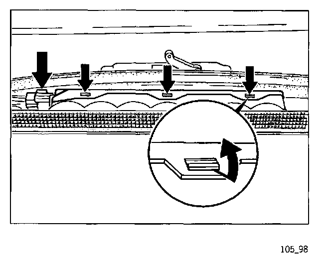 1. Open the convertible top until the convertible top compartment lid is fully open. Remove ignition key.