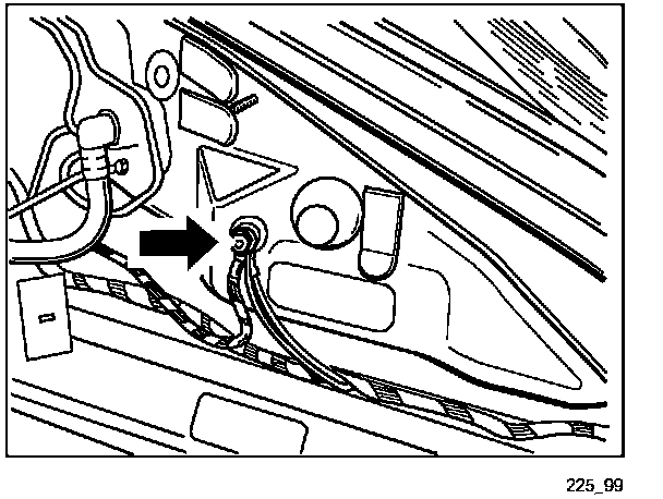 Ground point 2 is located on the left at the front of the luggage compartment (KS front left) Figure 225_99 shows the position of ground point 2.