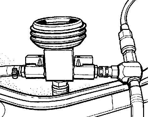 3. Connect the vacuum pressure gauge of the bleeder tool to the flexible extension. When doing so, ensure that both shutoff valves are closed (positioned 90° to flow direction)