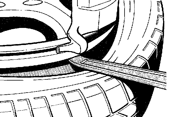 - Press off tire on both sides. Coat tire and the rim flange with mounting paste.