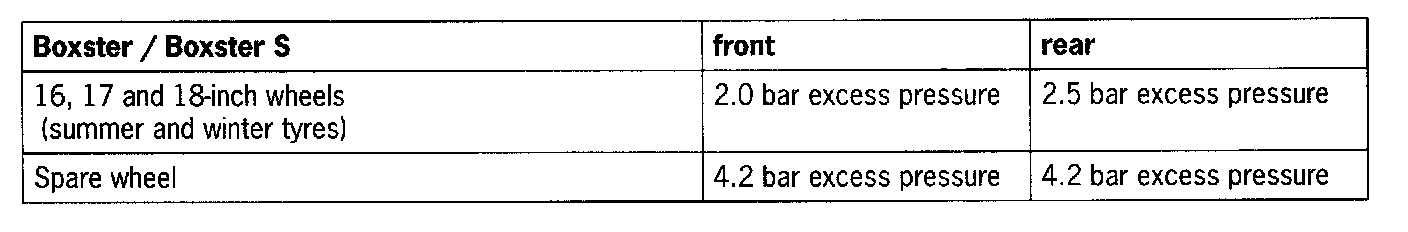 - Danger of injury and damage to property as a result of modified handling behaviour if the pressure in the tyres falls below the minimum values!