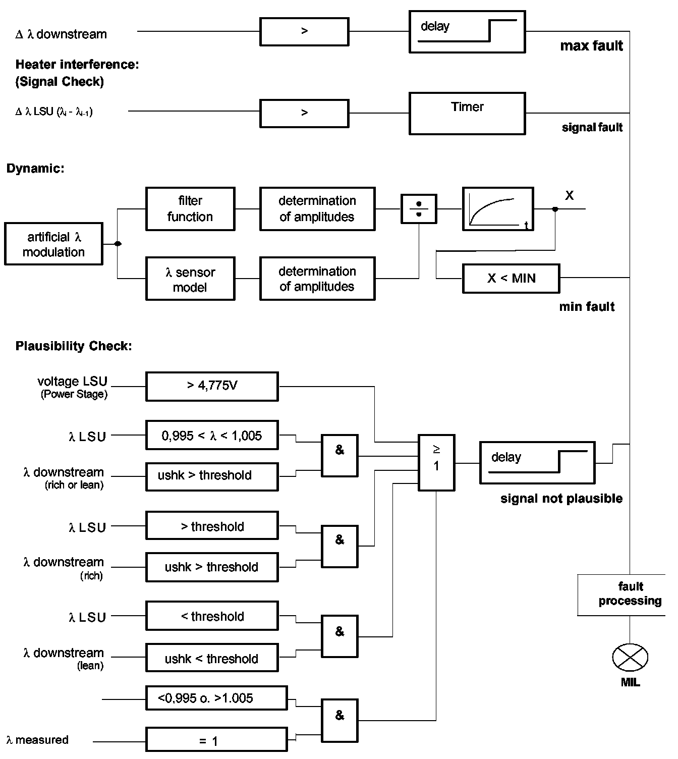 Due to aging the sensor dynamics can decrease. Diagnosis: Comparison of measured and estimated (model-based) lambda-error caused by artificial lambda modulation.