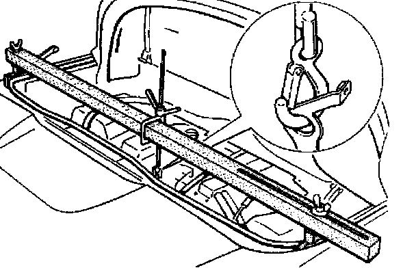 1. Hold engine by transport shackle in installed position with special tools 10 - 222A and 9591/1.