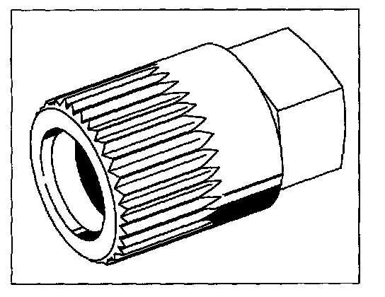 Counter with a double ring wrench when tightening with the a/f 17 multi-tooth adapter. The shaft is tightened to the prescribed tightening torque of 80 ± 5 Nm (59 ± 5 ftlb.) using the screwdriver insert (a/f 10 internal serration screw) and torque wrench.