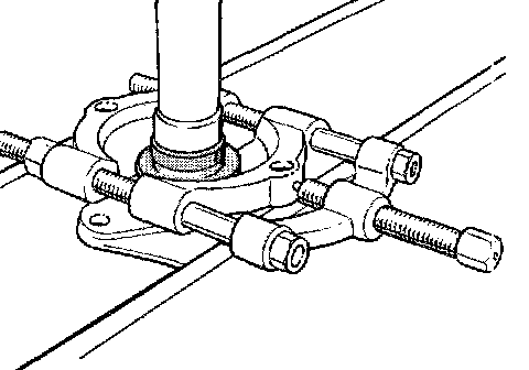Note: First pull the inner bearing race several millimeters off the wheel hub (Figure 741_97) so that the separator can be put into place. For this purpose, use a two-claw puller in combination with a suitable pressure piece (e.g. VW 433).
