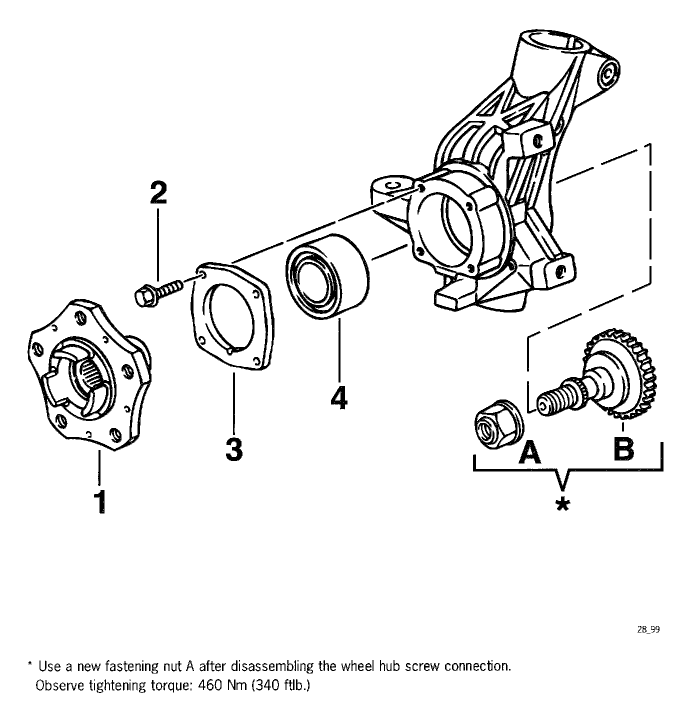 Front wheel bearing illustration and notes