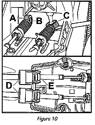 5.1.4 Insert support --> Figure 10 -D- in gearshift bracket and secure with locking clips --> Figure 10 -E-.