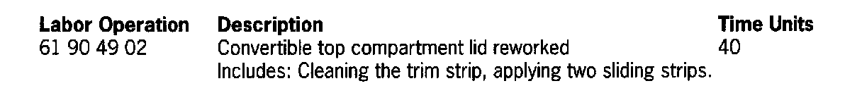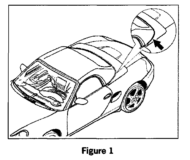 This is caused by insufficient clearance between the convertible top and the convertible top compartment lid. This causes chafing of the trim strip on the convertible top compartment lid in this area (Figure 1, arrow).