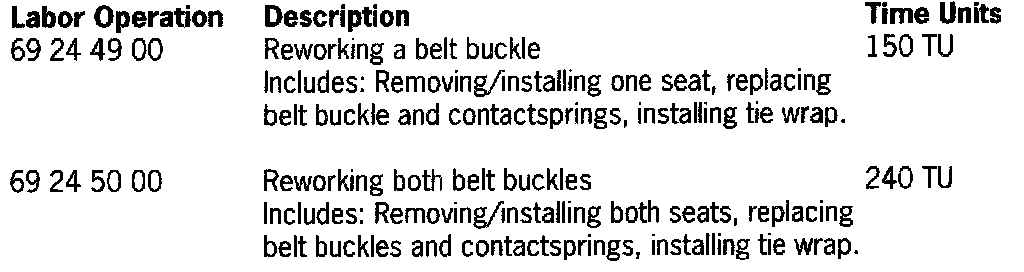 Depending on the fault code, changing the driver's side seat plug connection plug and installing a new belt buckle on the driver's seat (fault code 46) or passenger's seat (fault code 49).