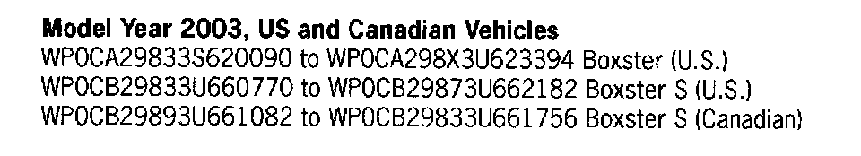 This is to inform you of a voluntary Workshop Service Action on certain 2003 model year Boxster and Boxster S vehicles, equipped with the Porsche Communication Management (PCM2) systems. Due to an internal software error, the PCM2 may experience the following problems: