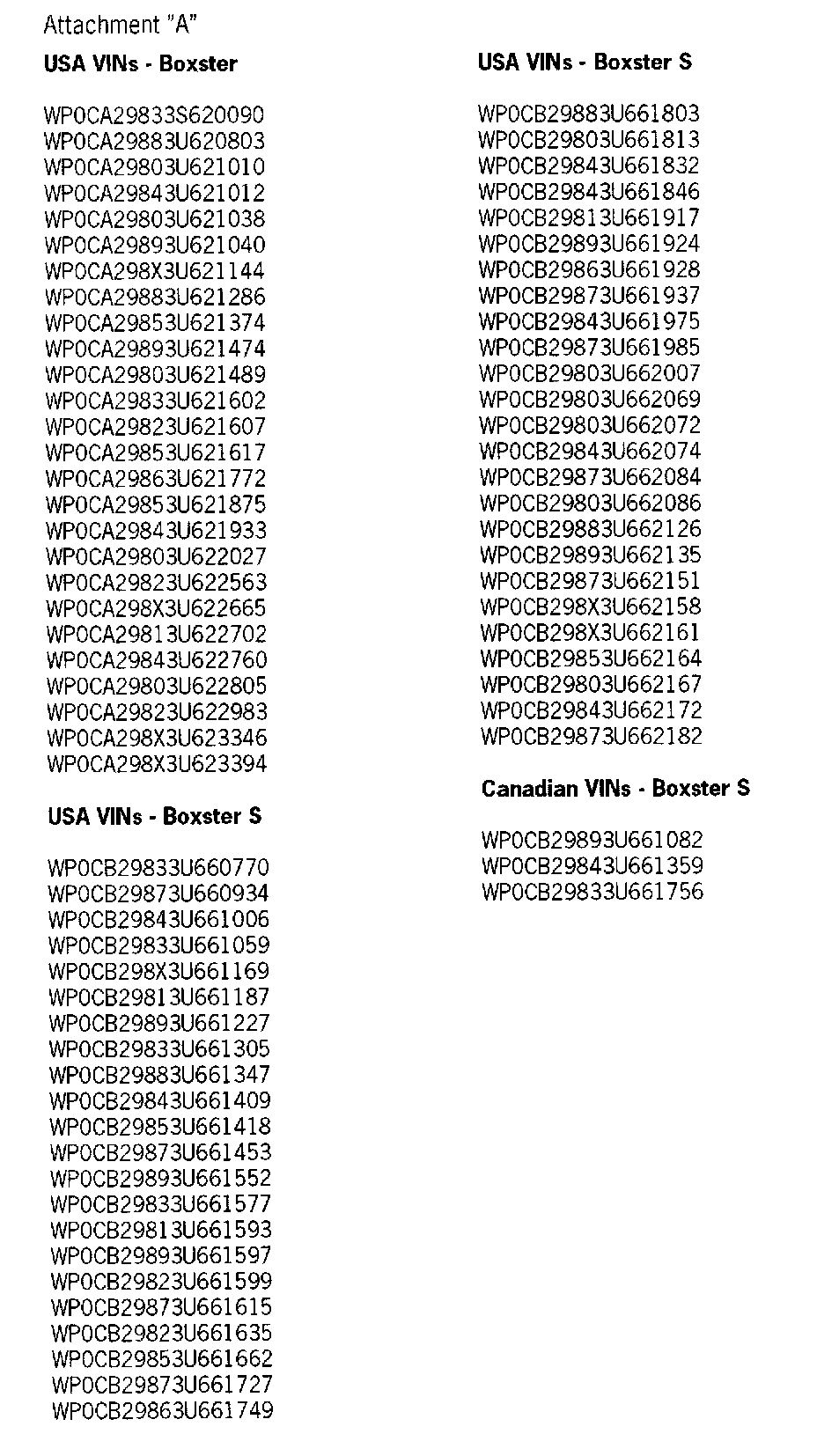 Not every vehicle in the below listed range may be affected. Use the ranges below as a general guideline. Refer to Attachment "A" to determine if a particular vehicle is eligible for this service action. Alternatively, the VIN can be checked in the Porsche e-DCS/WWS for confirmation of an open service action.