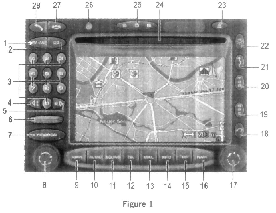 2.2 If present, remove CD (navigation/music) by activating the "Eject button" (Fig. 1, Item 23) from the CD slot (Fig. 1, Item 24).
