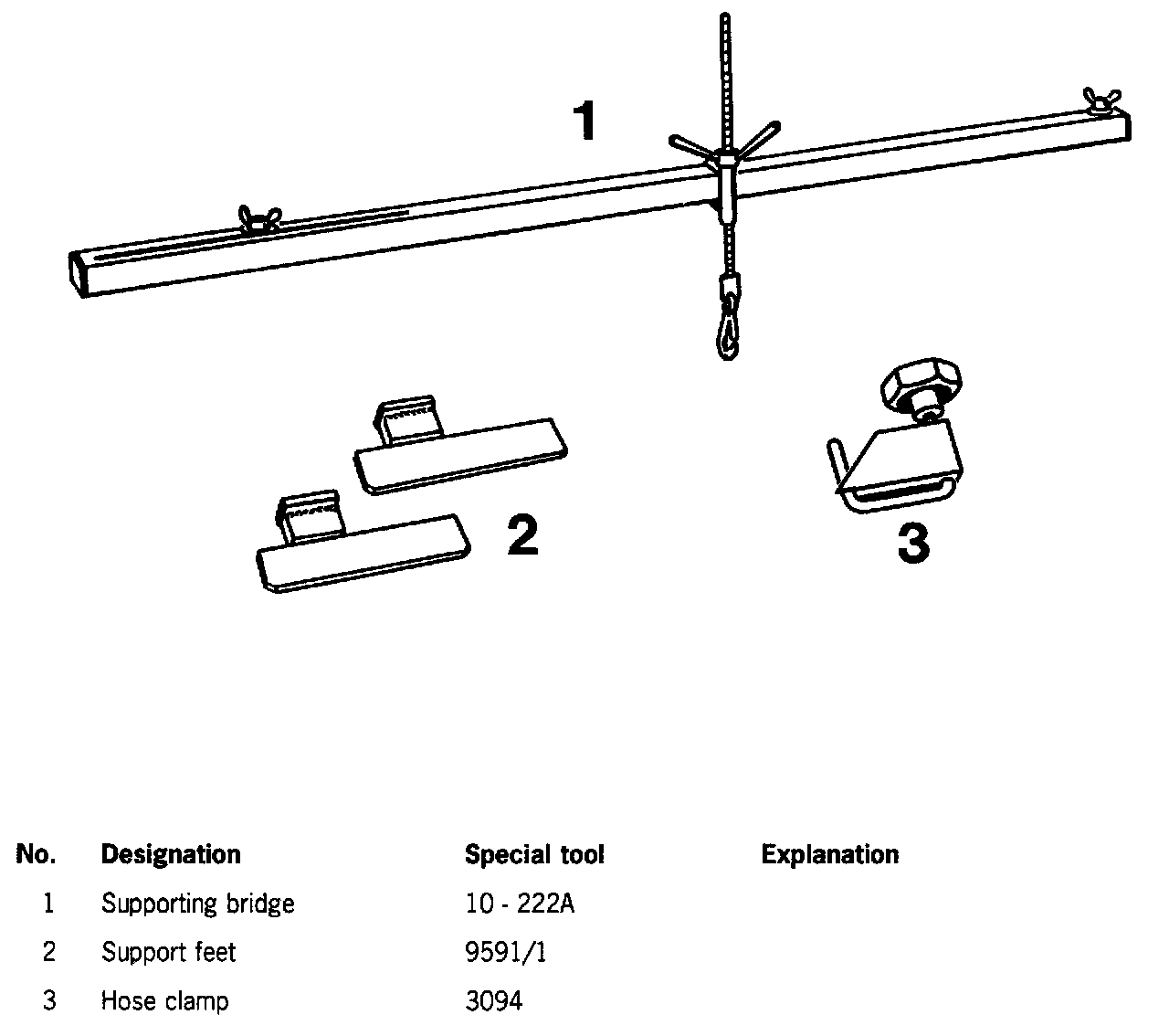 1. Hold engine by transport shackle in installed position with special tools 10-222A and 9591/1.