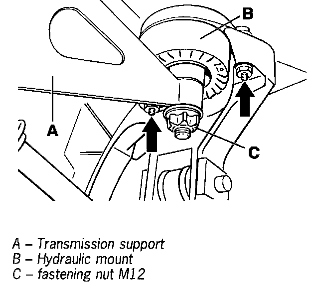 9. Unscrew transmission support with hydraulic mount at transmission and at carrier side member.