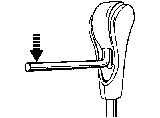 1. Lever off locking button with ATF angled pipe. The locking button must be pressed so that the pipe section can be inserted between the shift lever and the locking button. To do this, turn the ignition key to "1" position.