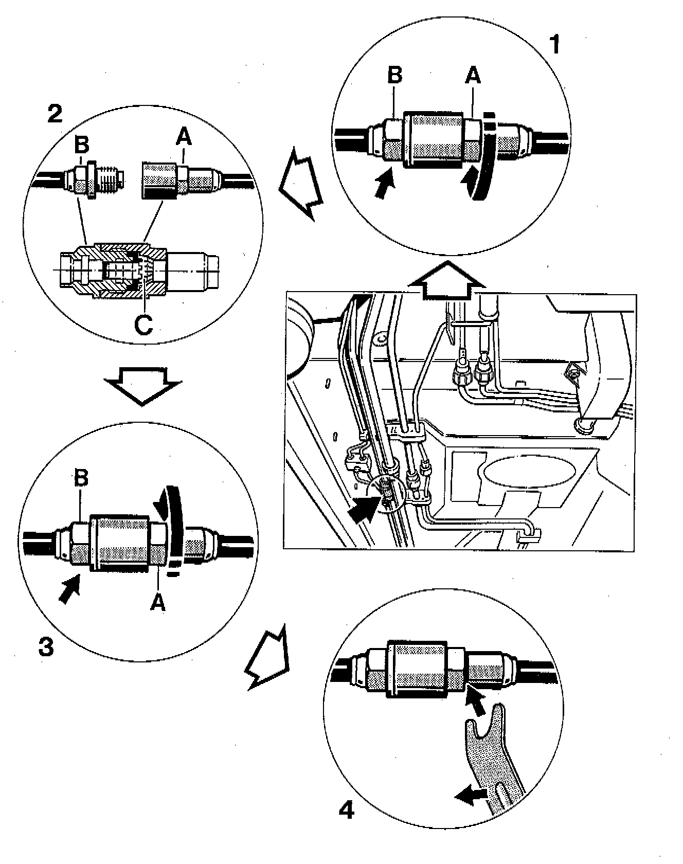 ^ Perform preparations carefully when handling plug-in couplings - e.g. cleaning and installing the plugs- as repairs are possible only by replacing the affected line in most cases.